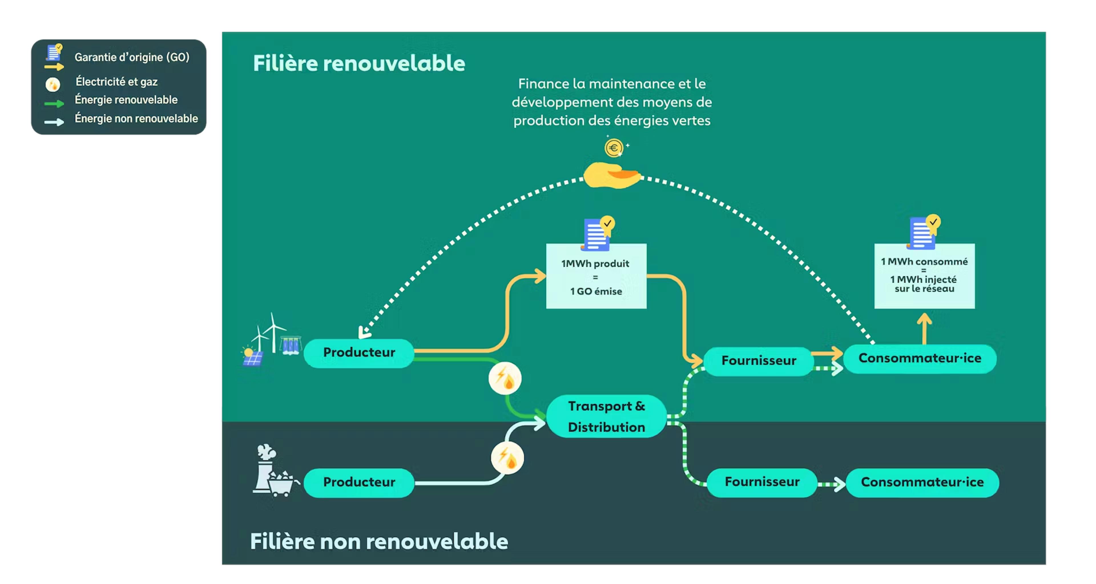 Concrètement, elle ne garantit pas que l’électricité qui sort de votre prise est verte (tout est mélangé sur le réseau), mais que l’équivalent de votre consommation a bien été produit grâce aux renouvelables et injecté sur le réseau.