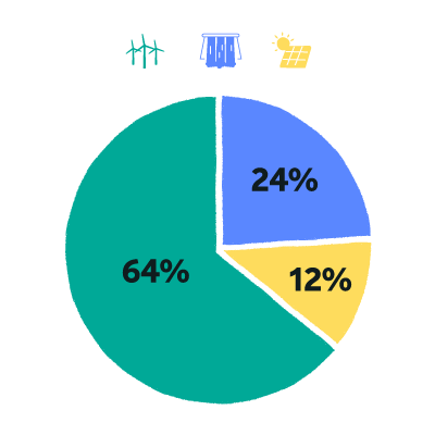 ✅ Notre électricité est 100% renouvelable : elle est issue d’éoliennes, de barrages hydrauliques et de panneaux photovoltaïques.