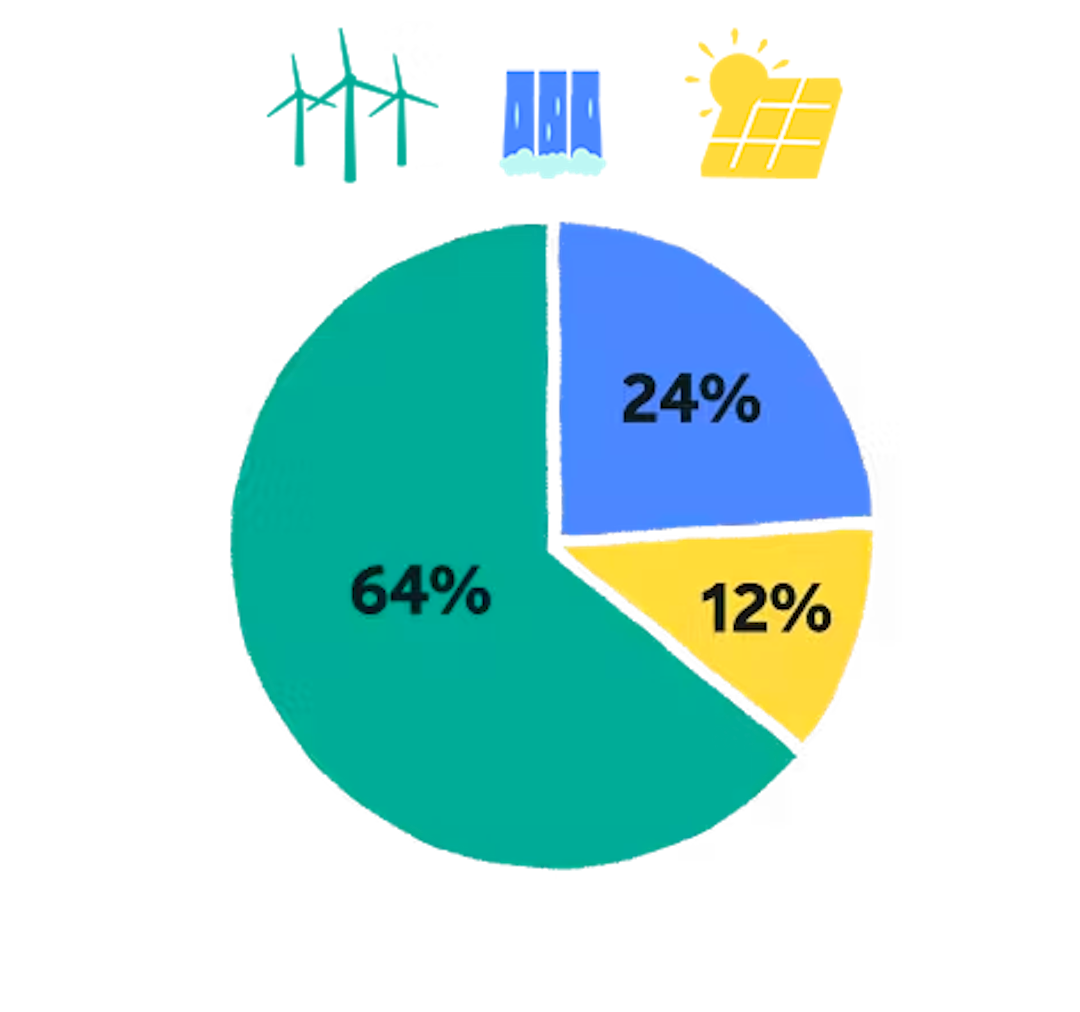 Elle est issue d’éoliennes, de panneaux photovoltaïques et de barrages hydrauliques.